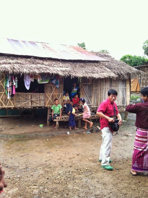 The Boy sits down at the table, plate laden with food, loaded generously, Burmese style, by the ladies manning the table. “I like this better than the Western food,” he says, as he shovels it in. He’s dressed exactly right for this sort of event. A shirt with a collar but all dark colors that the mud can’t ruin. He’s done this all on his own. Somehow, this month he’s started caring about such things as dressing appropriately, understanding that it’s part of showing respect in this culture.